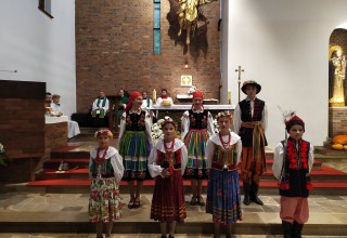 Wystąpiliśmy w naszych pięknych strojach, w zminimalizowanym składzie dzieci i młodzieży. Zespół śpiewał przy akompaniamencie naszej instrumentalnej kapeli.