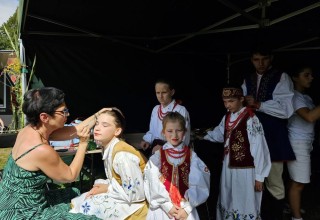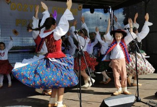Święto plonów to doskonała okazja, by poznać lokalne zespoły ludowe. W Przywidzu artystyczną sceną zawładnęły dzieci i młodzież z Zespołu Pieśni i Tańca Gminy Pruszcz Gdański "Jagódki". Nie mogłam oderwać od nich wzroku. To, ile pracy, czasu i serca zostawiły na scenie, naprawdę budzi szacunek. Mimo upału dawały radość gościom w sumie przez kilka godzin. W tradycyjnych ludowych strojach - kilka razy zmienianych, obwieszone koralami i w pełnym makijażu.